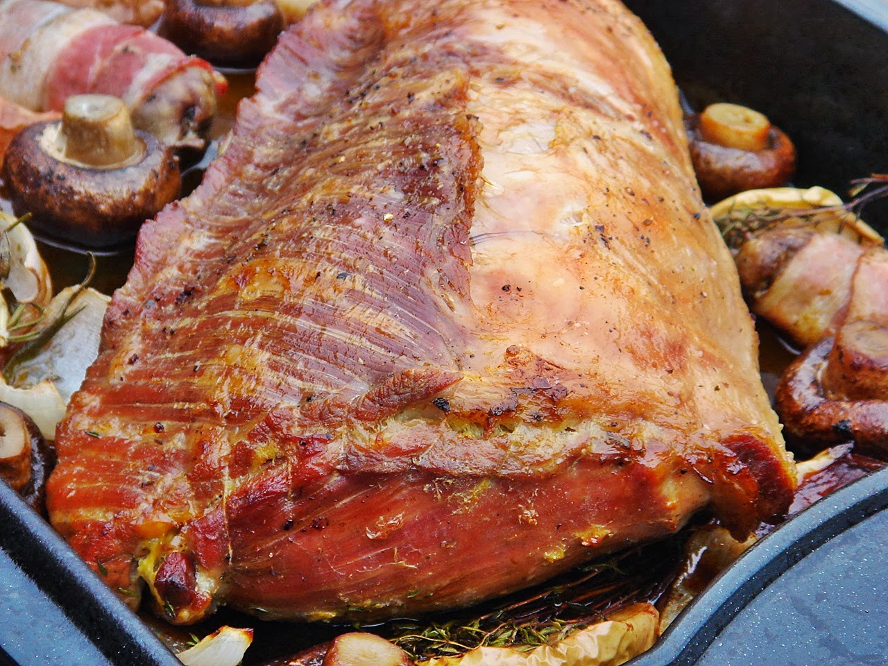 Mangalicazsírral kikent cserépedénybe helyeztem és 200 C fokra előmelegített sütőbe toltam 15 percre. Visszavettem a hőt 150 C fokra, mellé öntöttem a fehérbort és fóliával betakarva 1,5 órán át sütöttem.