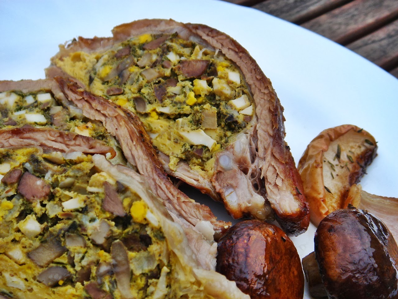 Amolyan klasszikust, szerintem még nem. Itt volt már az ideje. Rusztikusra hangoltam formailag, olyan jó kis falusi gombás-májas töltött dagadó sült ki belőle.