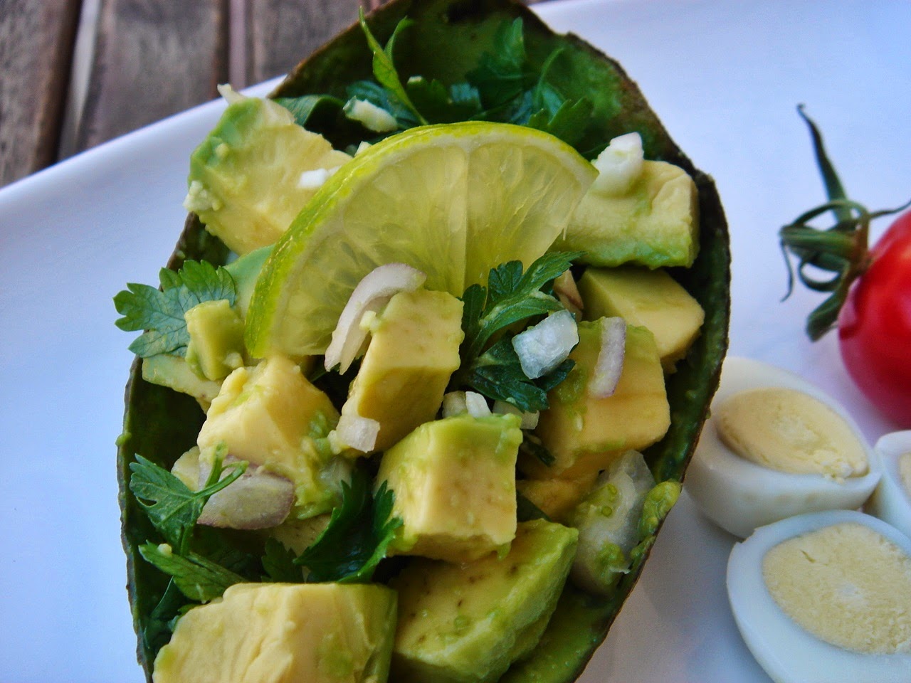 Visszatöltöttem a héjába és félbevágott fürjtojással tálaltam fel. Egészséges, laktató saláta, ugyanis az avokádó nem csak tele van vitaminokkal, hanem roppant tápláló is! J