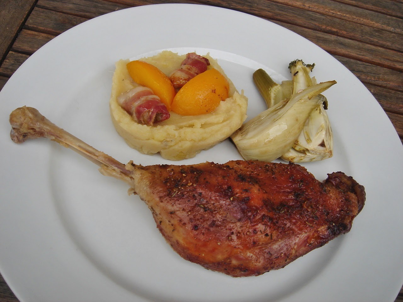 Olyan gyakran hallom, hogy itt-ott leszólják a befőtteket. Használjunk helyette friss gyümölcsöt. Természetesen ez tavasztól őszig rendben is van, de télen a befőtt időszaka van. Az ősszel befőzött barackbefőttet kínálta nagymamám is télen az étel mellé kísérőnek. Az igazi befőtt cukorral készül, ha nem is agyoncukrozva, de cukorral és nem édesítővel. Ahogyan a savanyúság is. Úgyhogy nincs lelkiismeret furdalásom, hogy a libacomb mellé barackbefőtt került.