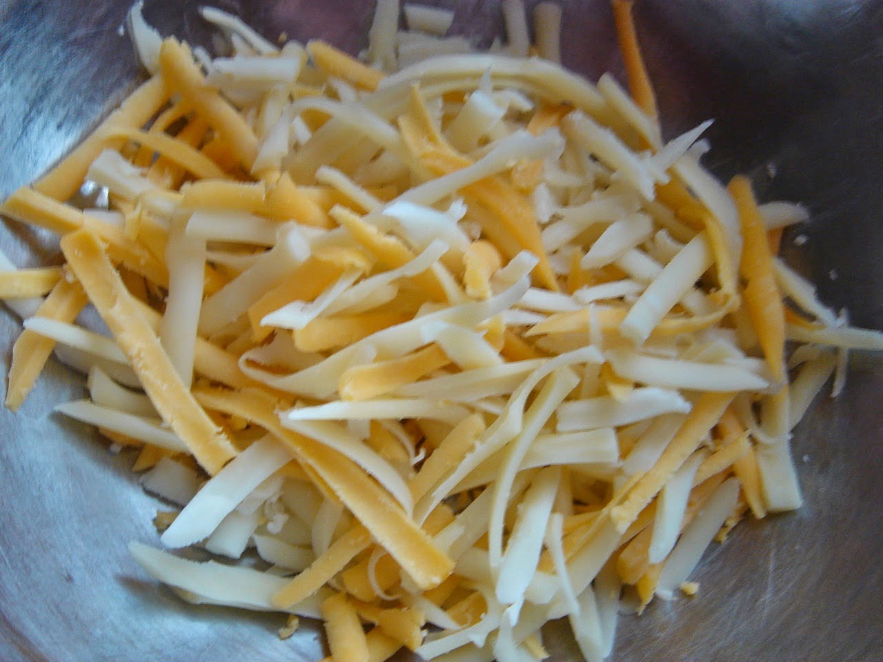 1-2 dkg cheddar, ementáli, gruyére sajt durvára reszelve és összekeverve